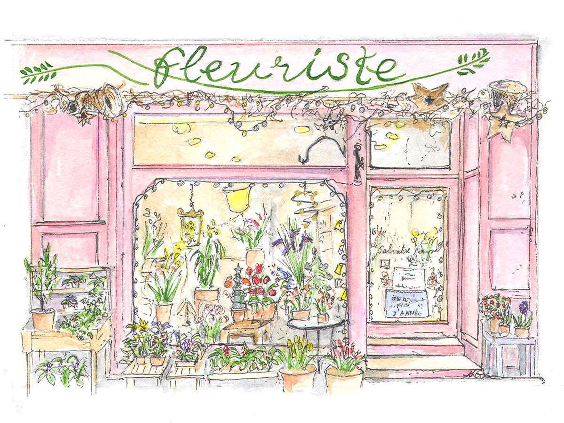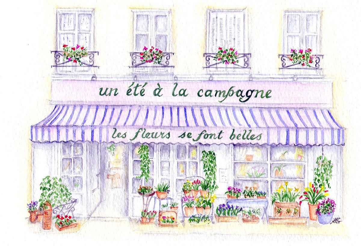 A6 notecards are available in packs of 5. Themes available are: Fleuristes de France ; Librairies de France ; Salisbury Close, and Les Portes de Loches.